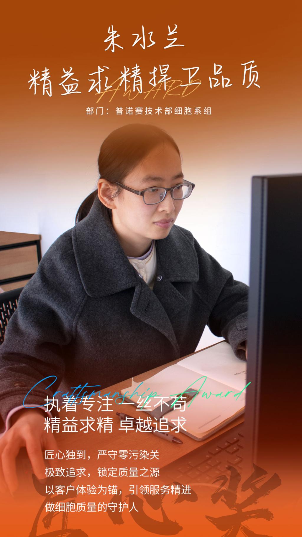 普诺赛技术部细胞系组 朱水兰 荣获第二届繁星奖 “匠心奖”