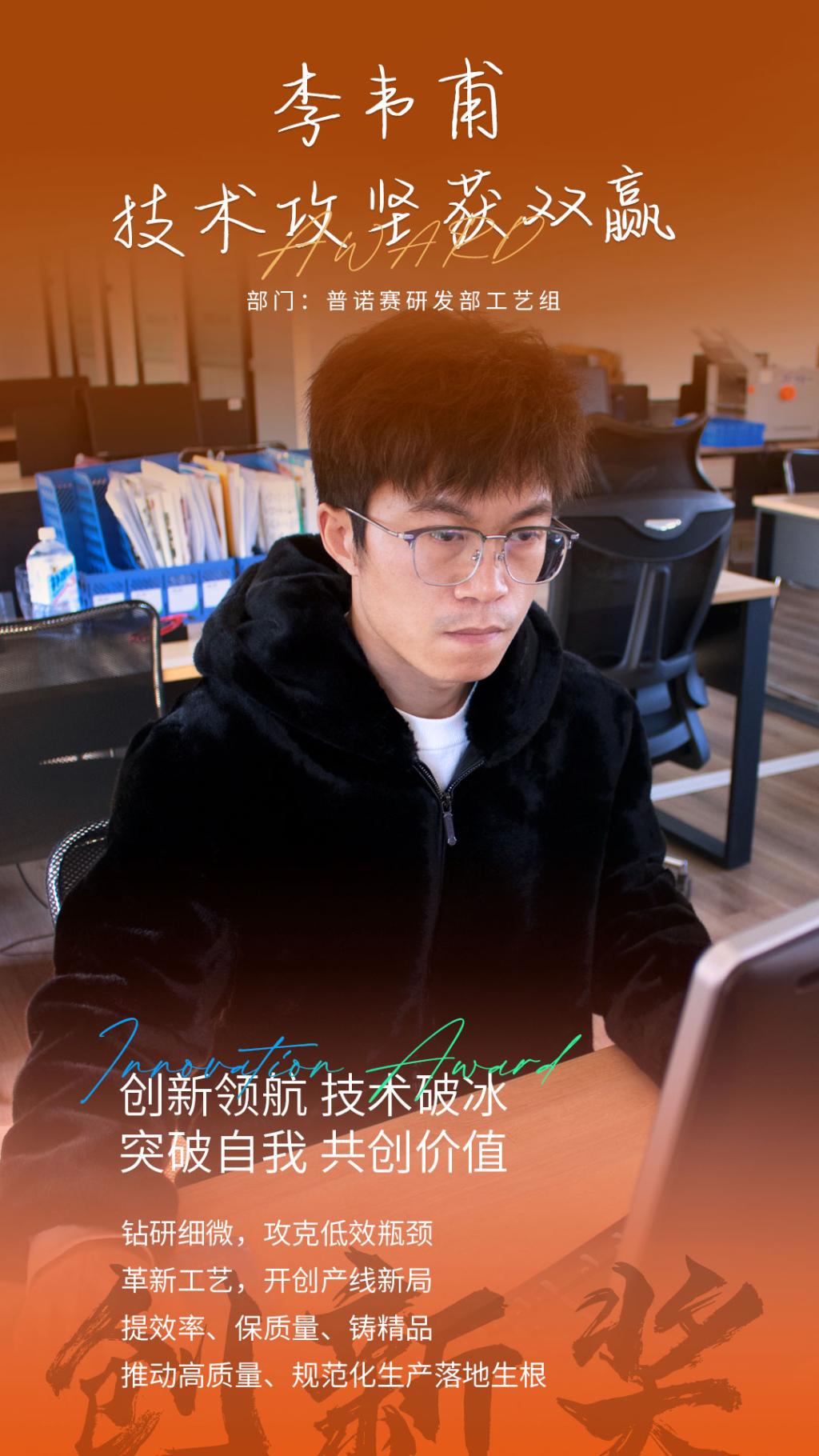 普诺赛研发部工艺组 李韦甫 荣获 第二届繁星奖 “创新奖” ”