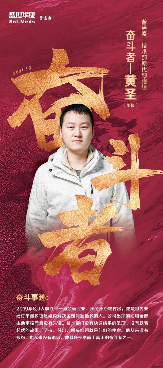 每天不仅要完成自己的业务订单,同时要承担整个组内生产质量控制,产品质检审核工作,承担了大部分难度较大的任务,而在组内生产中遇到的一些难题,需要他来实验验证,查阅资料,修改方法,在教导给其他人,原代细胞生产过程是比较耗时的,每一次完整实验基本上都需要一整天,他承担了很多工作,也为团队付出了很多,基本上每天都是7点后下班,从来没有怨言,一直默默的坚持付出。