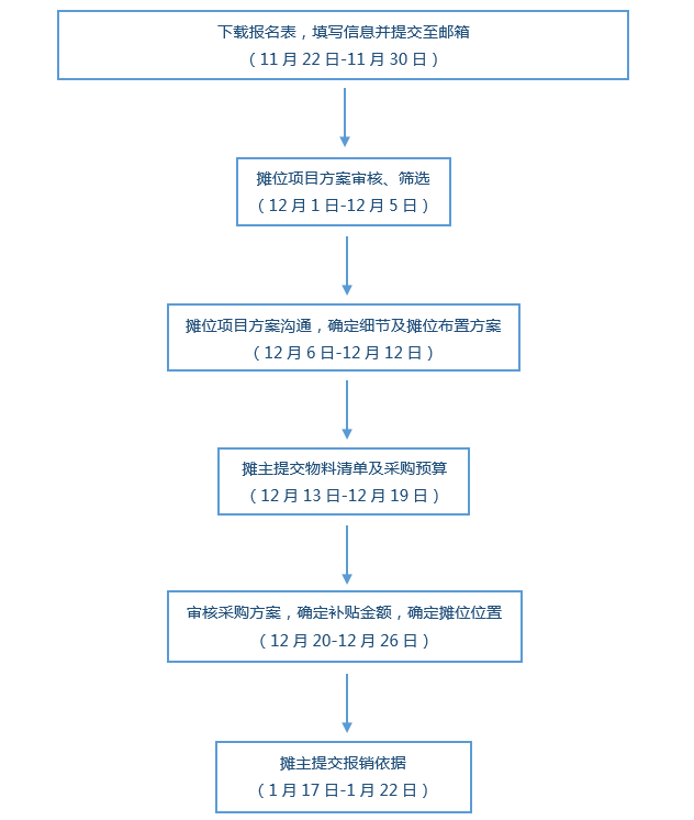 根据集市筹备时间安排,暂定报名流程如下,具体时间节点将根据实际情况调整,请报名的同事注意关注公司内部论坛网站具体通知!