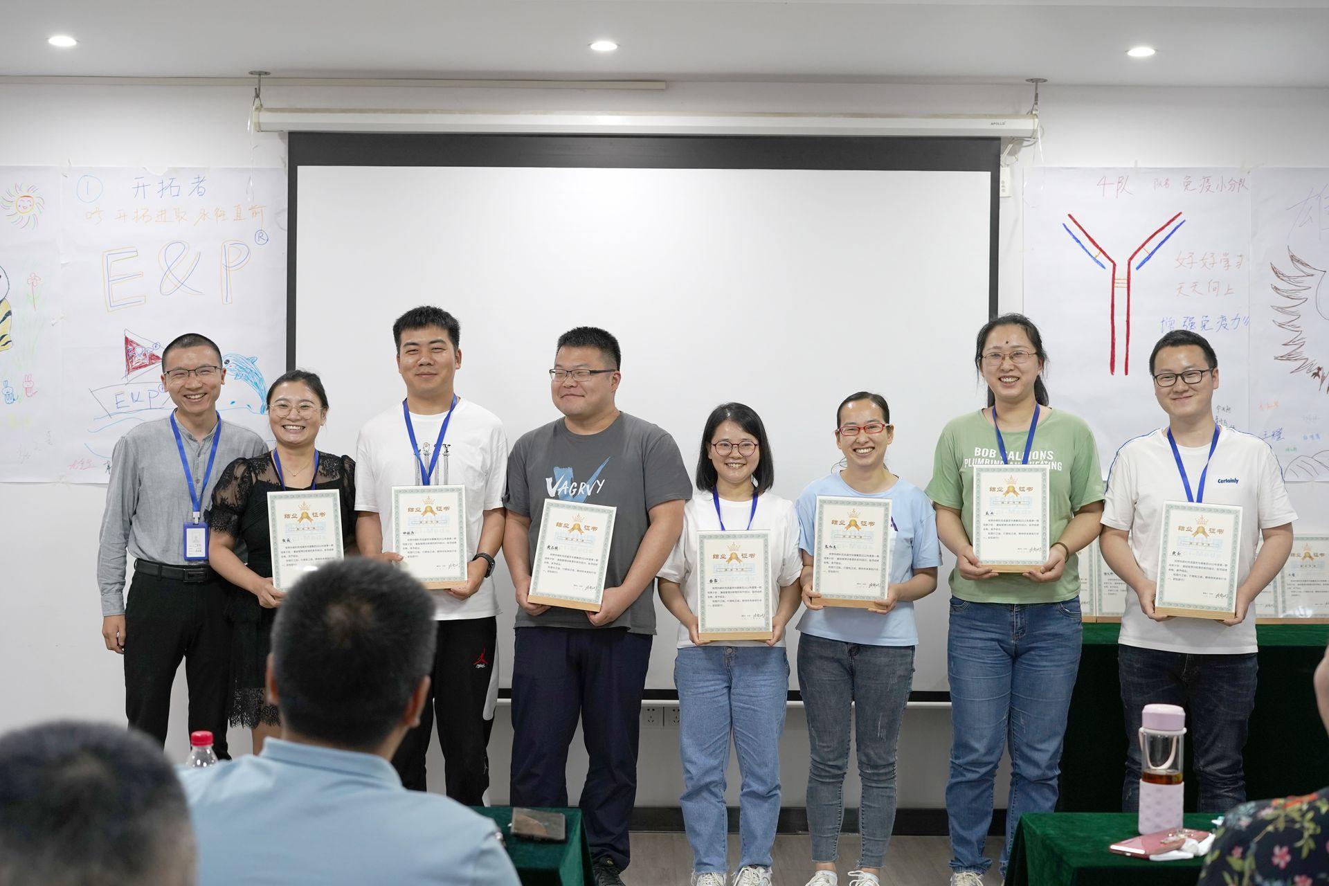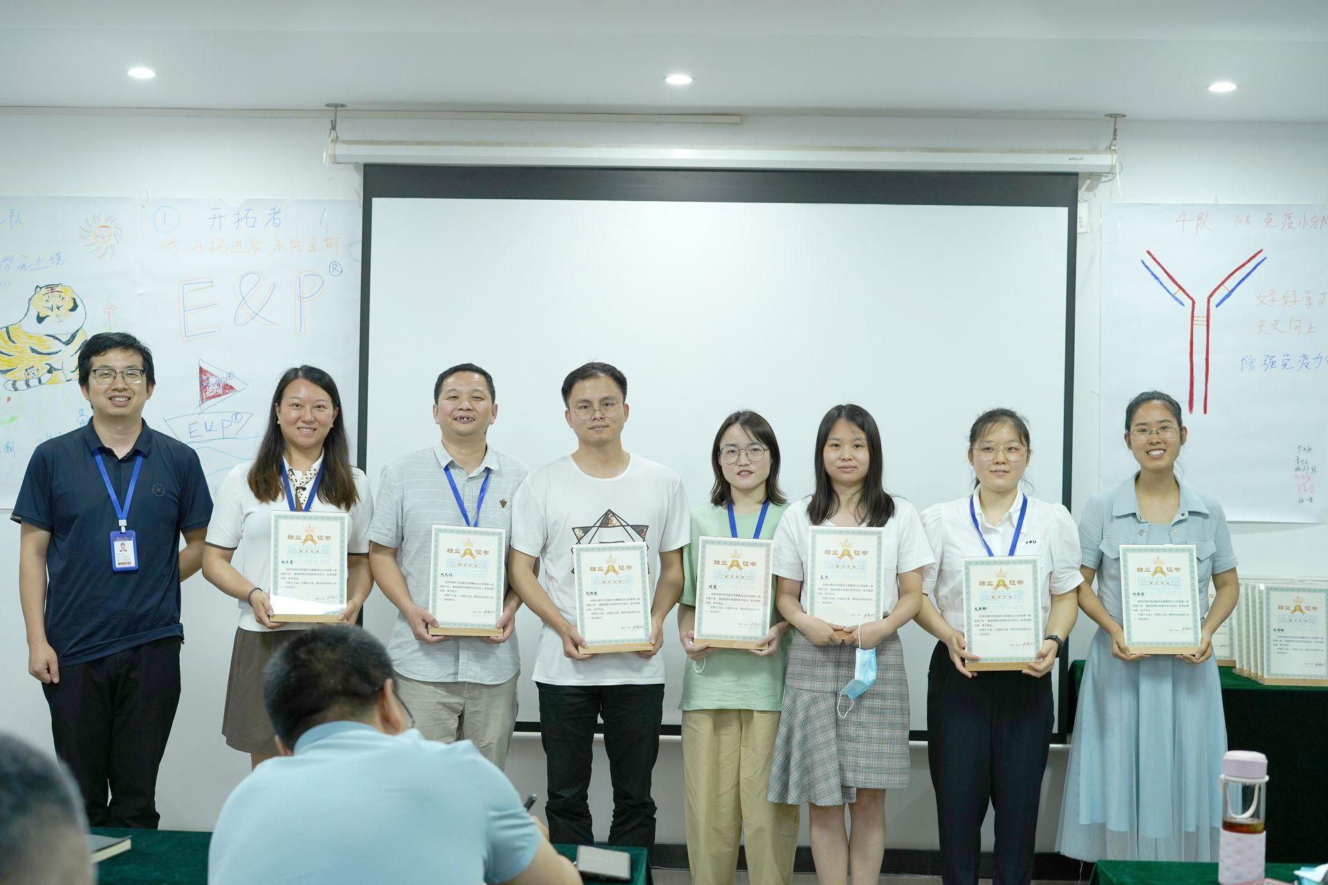 对于盛世华康的一线管理者来说,2022年6月1日是一个非常特别的日子。这一天公司组织举办了2022盛世华康集团“培英计划”第一期基础管理者训练营(以下简称训练营)的毕业典礼。本次训练营自开营以来得到了公司各级领导的高度重视及关注,值此毕业之季,董事长冷毅斌、副总经理王长乐、副总经理刘旻、副总经理吴娟、副总经理胡勤芹、普诺赛总经理吴亭、优恩总经理夏红星、伊莱瑞特总经理杨飞、菲泓总经理朱斌权及各事业部部长莅临现场,共同见证参训的35位一线管理员工顺利完成学业,结训毕业。